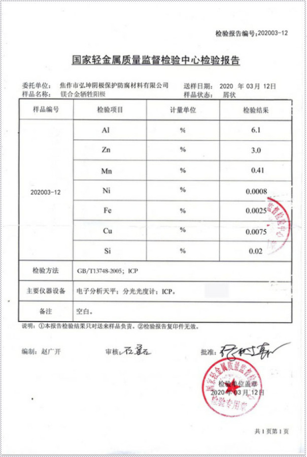 鎂合金犧牲陽極檢驗(yàn)報(bào)告II